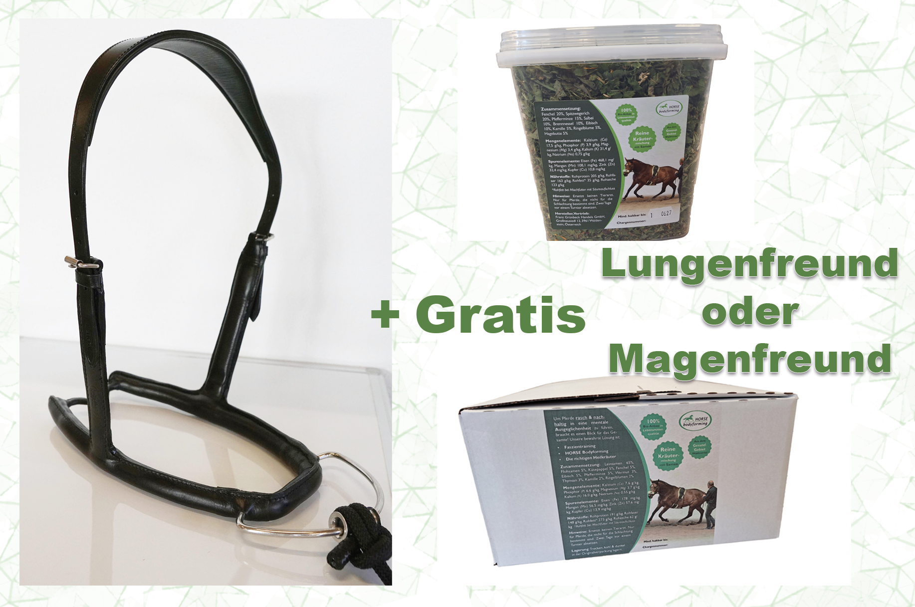 SET Mobility Bridle + Kräutermischung: Gr. S gerade + Lungenfreund